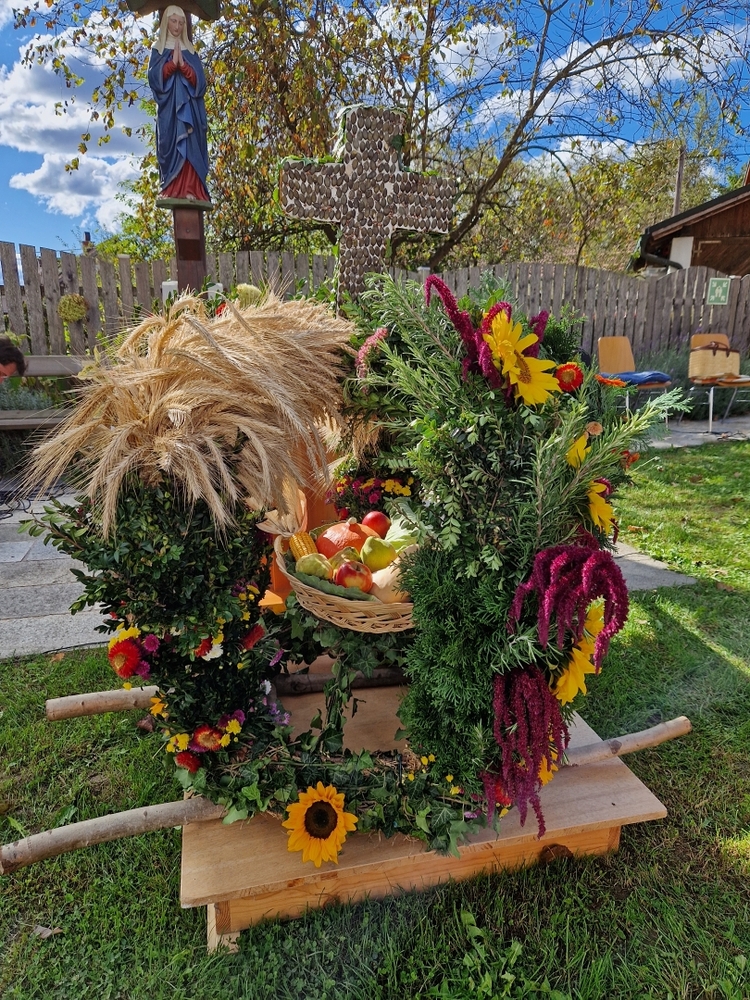 Die Kindergartenkinder sowie VS- und MS-Schüler*innen gestalteten die Feier mit, und die Landjugend Zettling brachte in guter Tradition die schöne Erntedankkrone. Danke dafür!