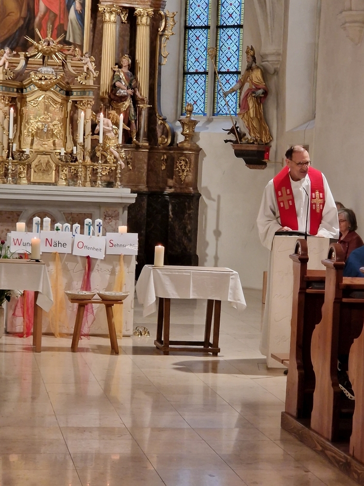 Beim Aschermittwoch-Gottesdienst mit Vikar Norbert Glaser und Diakon Michi Zepf erhielten die vielen Gläubigen, die gekommen waren, das Aschenkreuz auf die Stirn gezeichnet. Es ist ein starkes sichtbares Zeichen, das „hautnah“ an die Vergänglichkeit erinnert und uns auffordert, im Einklang mit dem Evangelium zu leben.