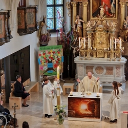 Zelebriert wurde die hl. Messe von Vikar Gerhard Hartmann und Diakon Michi Zepf, der die vielen Kinder zusammen mit den Minis zur Evangeliumsprozession und zum Vater-unser-Kreis einlud – spannende Momente für unsere Kleinen!