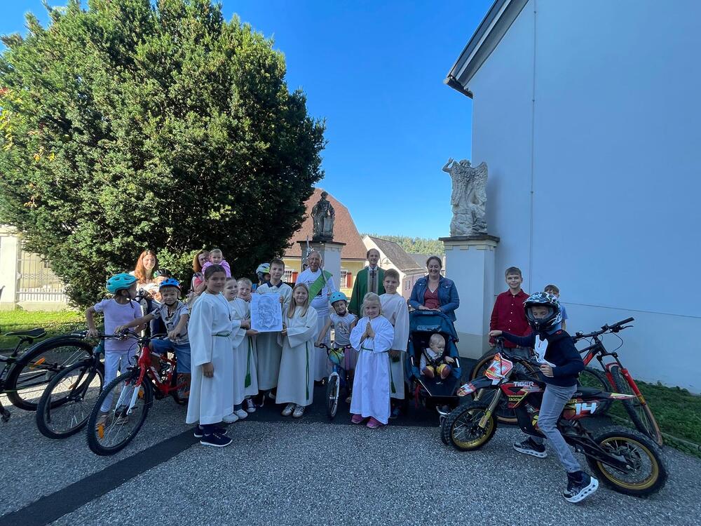 Diesen Sonntag durften wir in unserer Pfarrkirche Hitzendorf gemeinsam den Geburtstag von P. Thomas feiern. Viele waren gekommen, darunter auch zahlreiche Kinder mit ihren Tretrollern, Fahrrädern, Kinderwägen – ja sogar ein Rollator war mit dabei!