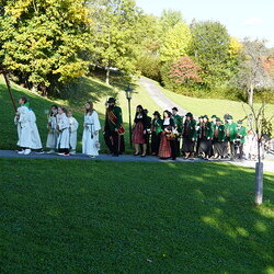 Die Festmesse wurde von P. Paulus gemeinsam mit der Blasmusikapelle sowie den Kindern der Volksschule und des Kindergartens gestaltet. Bei wunderschönem Herbstwetter zogen wir von der alten Kirche hinauf zur Pfarrkirche, wo wir gemeinsam Gott für die reiche Ernte des Jahres dankten.